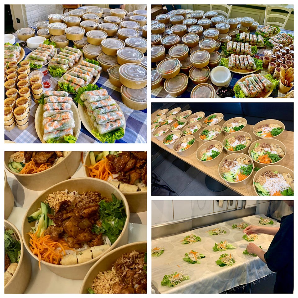 Ici, un exemple de préparation et de livraison de 70 Bo-Bùns et Rouleaux de Printemps à 1 heure de Lille